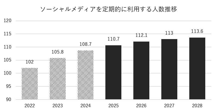その一方で、SNS利用者数(サイトやアプリケーションを月1回以上利用する人)は、2023年の1億580万人から2028年の1億1,360万人へと、成長鈍化が見込まれている。あらゆる年代に普及が進んだ結果、利用者数という点においては頭打ちに近づきつつあり、今後は、「いかに多くの人にリーチするか」という数の論理から、より緻密なターゲティングに基づく「エンゲージメントの質」や「LTVへの直接的な貢献」が一層問われることになるものとみられる。