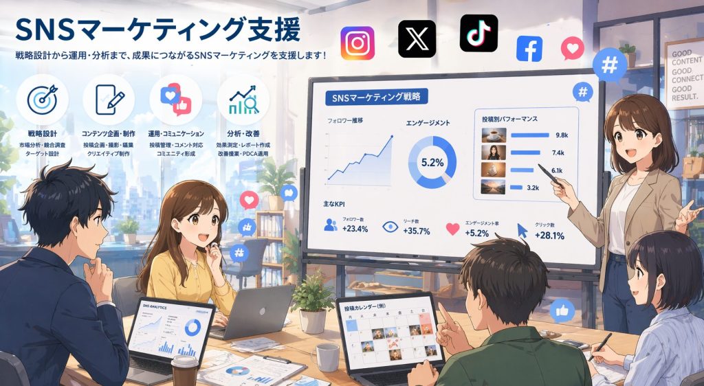 「縦型ショート動画」の爆発的普及も見逃せない。TikTok、YouTube ショート、Instagram リールなどに代表される縦型ショート動画は、ユーザーのアテンションを短時間で強烈に惹きつけるフォーマットとして定着した。テキストや静止画を中心としたこれまでのクリエイティブ制作体制では、月に数十本の動画を高速でテストしPDCAを回すという新たなゲームのルールに対応しきれず、制作リソースの枯渇に苦しむ中堅・中小のSNSマーケティング支援事業者が急増している。